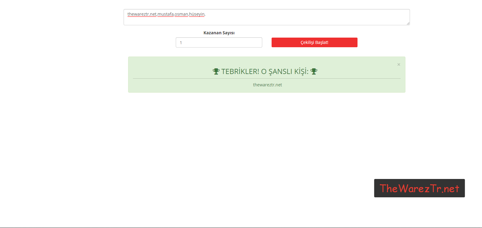 Javascript ile kodlanmıştır kuruluma gerek yoktur.Basit tasarımı ile kolayca Çekiliş yapabilisniz.
